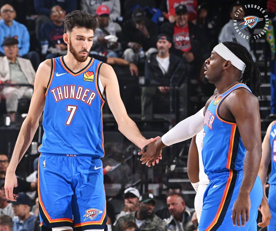 雷霆方面,亚历山大本赛季场均可以贡献32.1分6.2次助攻,霍姆格伦场均17.8分8.6个篮板,杰威场均16.8分5.6次助攻,阿杰·米切尔场均14.1分,哈滕场均11.2分10.4个篮板,维金斯场均10.4分。