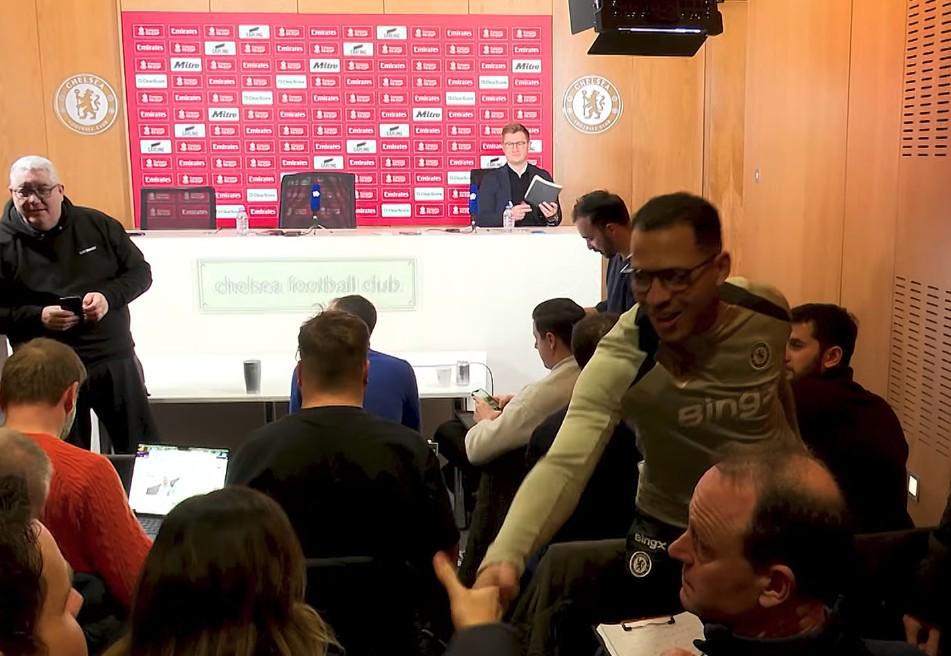 在新闻发布会正式开始前,罗塞尼尔与记者席的记者们一一握手并问好。